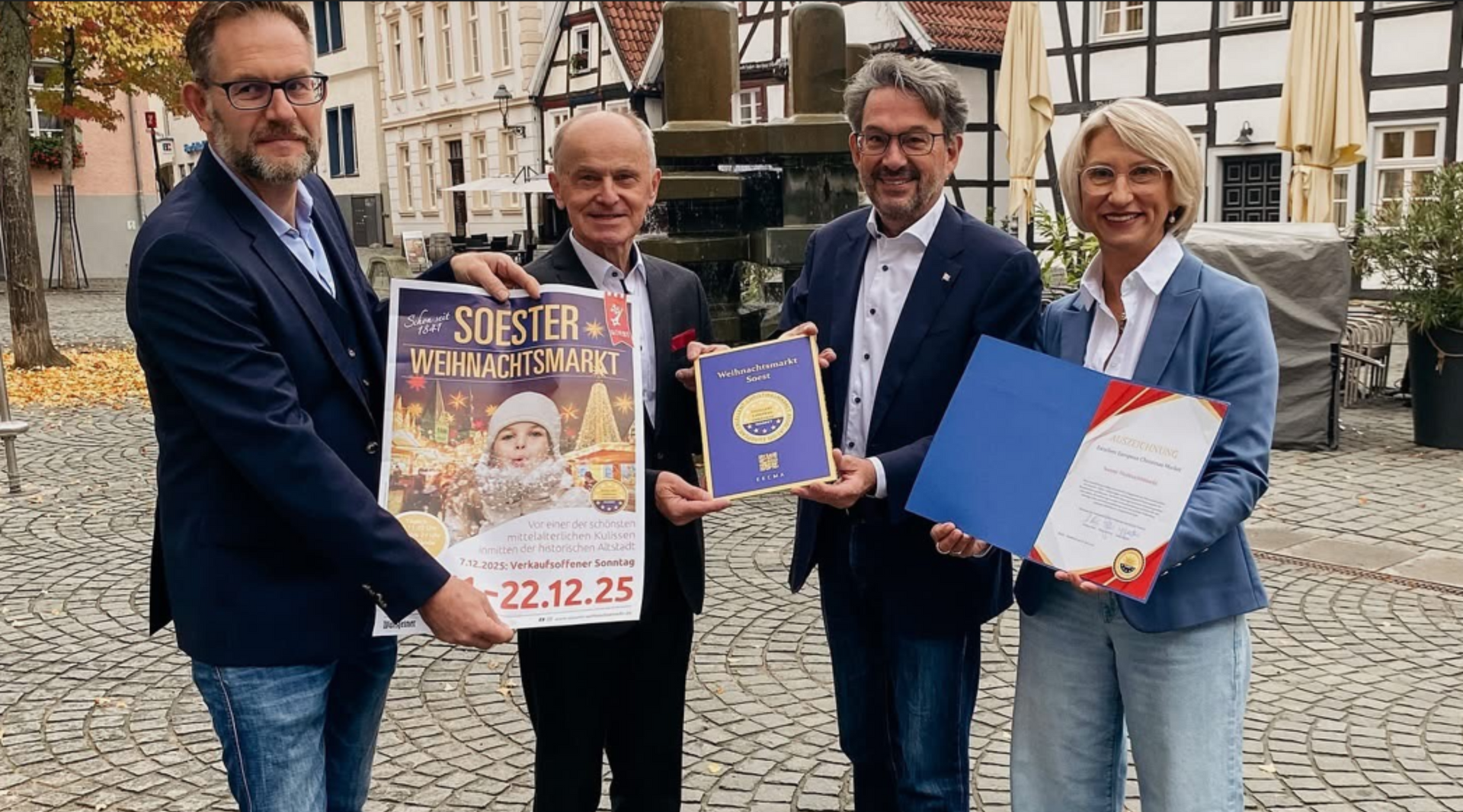 Malerisch umrahmen imposante Grünsandsteinkirchen und historische Fachwerkhäuser die liebevoll eingerichteten Stände des Soester Weihnachtsmarktes, die sich auf verschiedenen historischen Plätzen in der Altstadt verteilen.